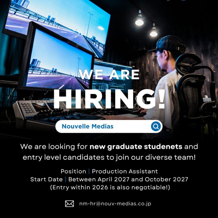At Nouvelle Médias, we are now hiring new entry-level talents with no prior experience required! In the rapidly-evolving world of media production, a flexible mindset is essential to lead the way. Regardless of your professional background, if you have a genuine passion for media, we want you to join us in challenging the established frameworks and redefining industry standards together.